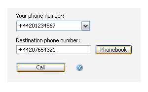 Then enter the number you want to call in the 'Destination phone number' field (or choose a number from your contacts phonebook).